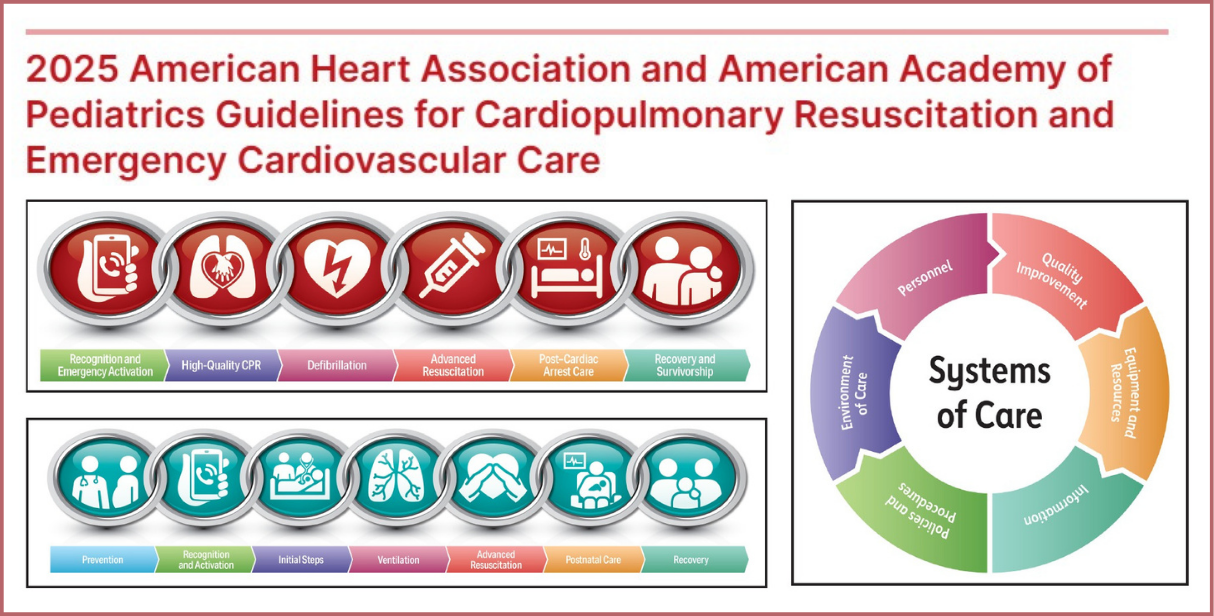 Lee HC, Strand ML, Finan E, et al. Part 5: Neonatal Resuscitation: 2025 American Heart Association and American Academy of Pediatrics Guidelines for Cardiopulmonary Resuscitation and Emergency Cardiovascular Care. Circulation. Published online October 21, 2025. doi:10.1161/cir.0000000000001367