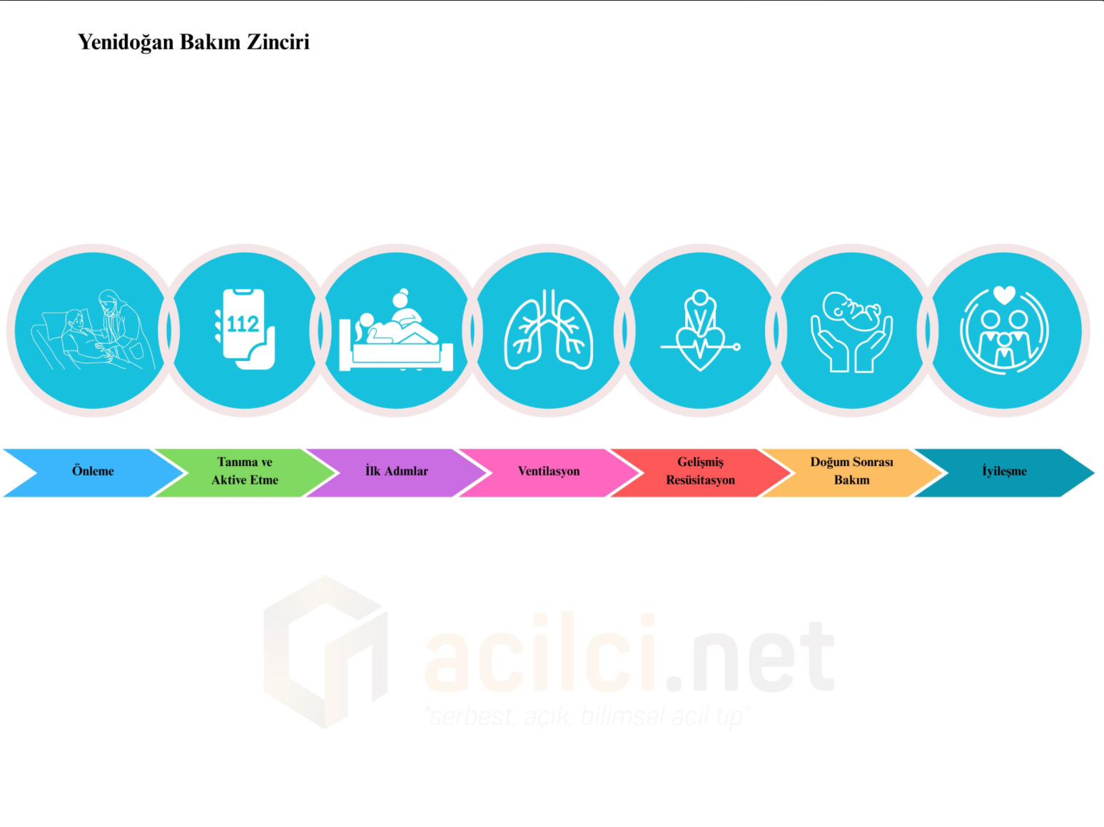Doğumdan sonraki ilk 30 saniye kritik önemdedir: kurut, pozisyon ver, uyar ve solunumu değerlendir. Bebek doğar doğmaz kurulanmalı, sıcak tutulmalı, gerekirse hava yolu açık olacak şekilde pozisyon verilmelidir. Solunum, tonus ve kalp atım hızı hızla değerlendirilmelidir. Bu basamaklar 30 saniye içinde tamamlanmalıdır.