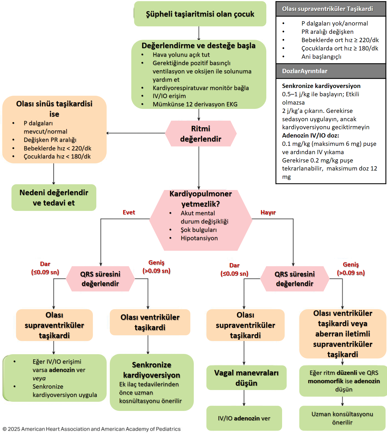 Amerikan Kalp Derneği (AHA) ve Amerikan Pediatri Akademisi (AAP) tarafından yayımlanan Pediatrik İleri Yaşam Desteği (PALS) kılavuzları, yenidoğanlar hariç 0–18 yaş arası bebek ve çocuklarda kardiyak arrest öncesi, arrest sırası ve arrest sonrası acil bakımın yönetimine odaklanmaktadır. Kılavuzlar; toplum, hastane öncesi ve hastane ortamlarında çalışan sağlık profesyonelleri için bir başvuru kaynağıdır.