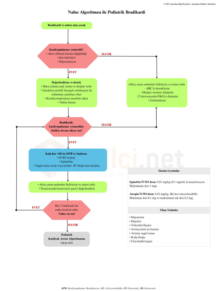 AHA 2025 kardiyopulmoner resüsitasyon kılavuzunda yer alan algoritmaların görsellerini Türkçe’leştirdik. Tüm kılavuzun özet tercümesi de yakında sizlerle beraber olacak. İkinci bölüm olarak pediatrik hastalardaki algoritmaların görsellerini paylaşıyoruz.