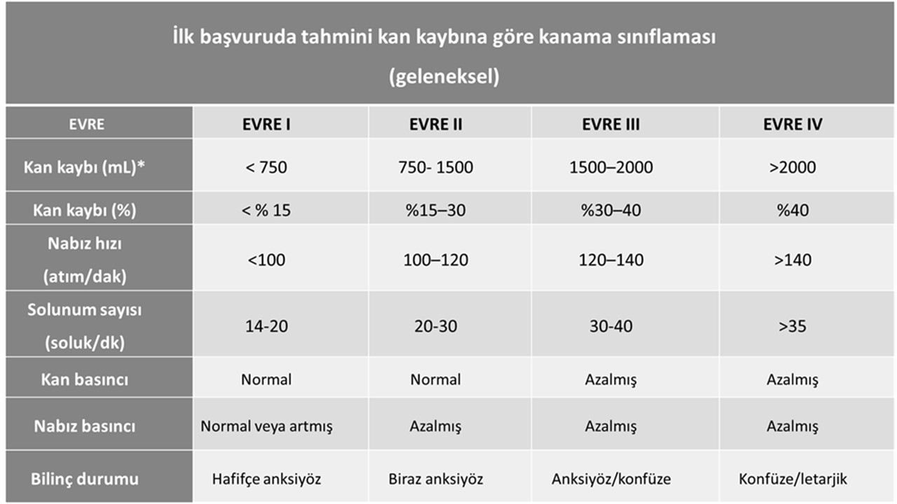 Üstelik sadece vital bulgularla yapılan standart ATLS sınıflamasının sadece %10 travma hastasında uygun değerlendirme yapılabildiği bildirilmiştir (11). Daha objektif bir değerlendirme için Laktat ve Baz açığı hesaplanması (Kan gazı analizi) kanama varlığı ve ciddiyeti konusunda kullanışlı olabilir. Baz açığı ile sınıflamanın ATLS sınıflamasından daha iyi olabileceği bildirilmiştir (12).