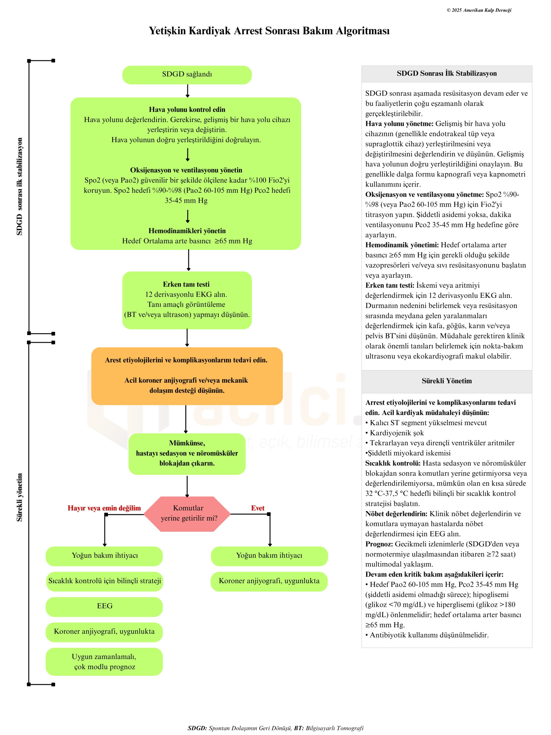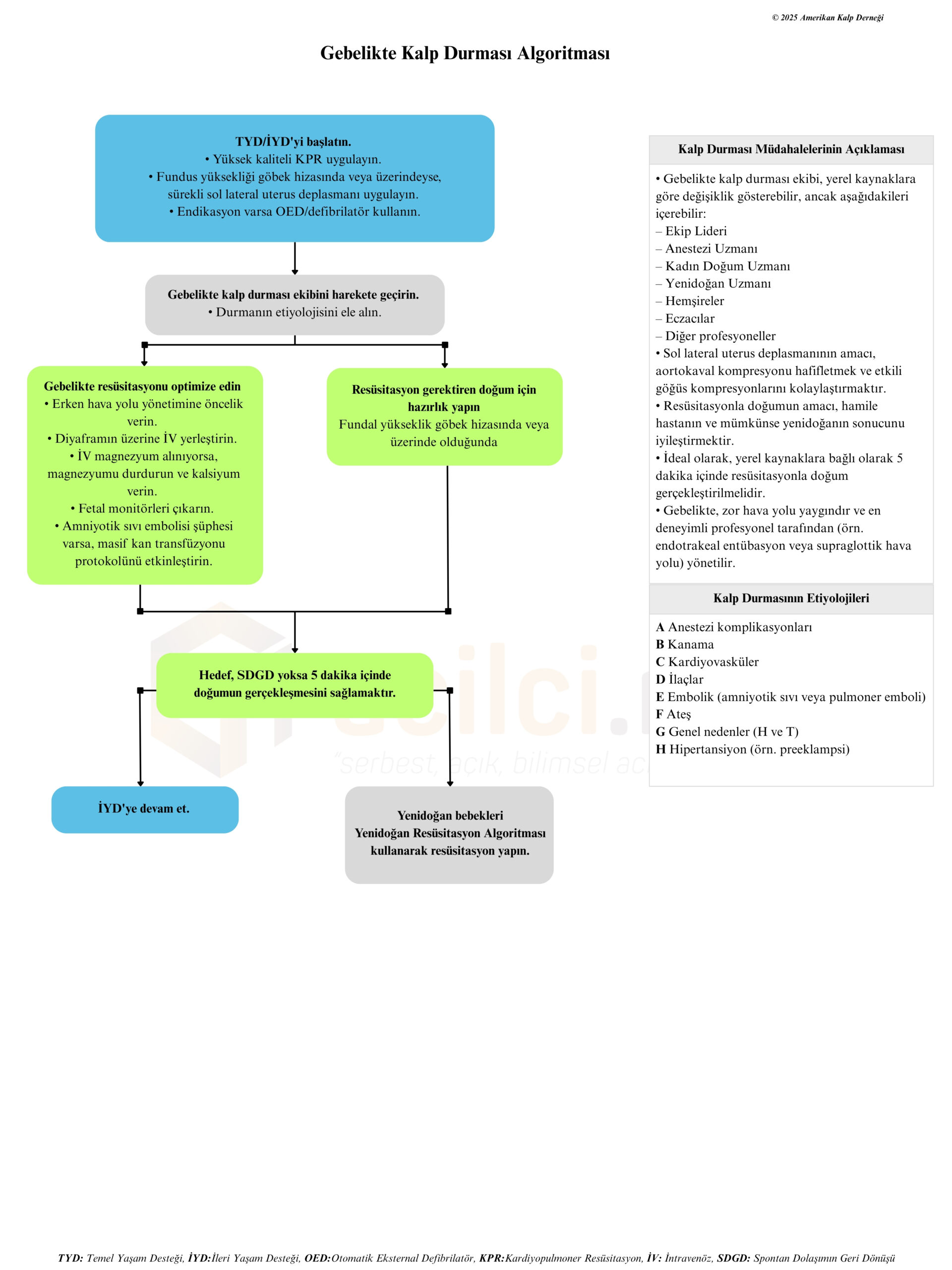 AHA 2025 kardiyopulmoner resüsitasyon kılavuzunda yer alan algoritmaların görsellerini Türkçe’leştirdik. Tüm kılavuzun özet tercümesi de yakında sizlerle beraber olacak. Üçüncü ve son bölüm olarak özel durumlar ve özel hasta grupları algoritmalarının görsellerini paylaşıyoruz.