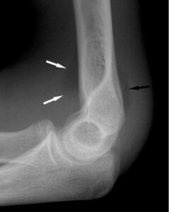 Aynı zamanda suprakondiler kırık hattıyla beraber posterior yağ yastıkçığı bulgusu da görülmekte