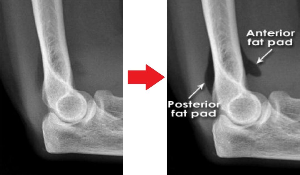 Bazı non-deplase kırıklarda kırık hattı görülemeyebilir ve anormal yağ yastıkçığı işareti yaralanmanın tek bulgusu olabilir.