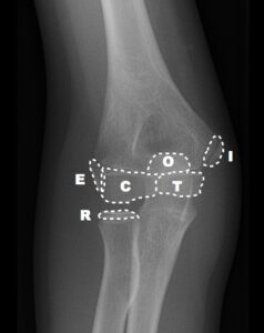 Bu noktaların ortaya çıkma zamanı tahmin edilebilir ancak hastadan hastaya, yaşa, cinsiyete, gelişime göre farklılık gösterebileceği unutulmamalıdır. Karşı taraftaki dirsekle karşılaştırılması patolojik görünüm ya da yapısal farklılığın ayırt edilmesinde yardımcı olur. Bu kemikleşme merkezlerinden ilk ortaya çıkanı Kapitulumdur. Ortaya çıkma sırasına göre “CRITOE” kısaltması kullanılabilir. Kapitulum hariç bu merkezler kızlarda erkeklere göre daha erken görülmektedir.
