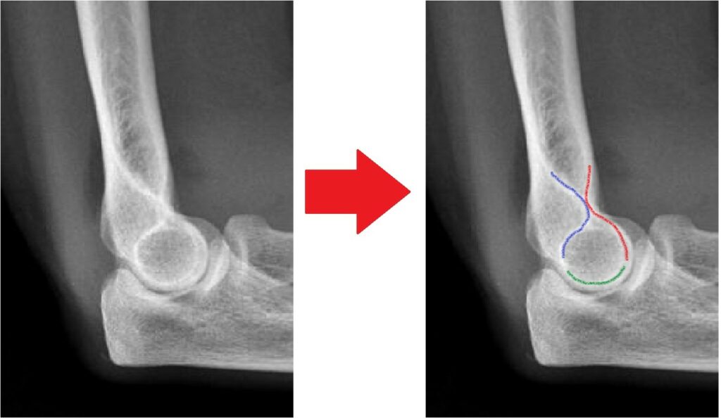 Doğumda dirsek eklemi tamamen kıkırdaktır ve radyografilerde bu kıkırdak alana bağlı olarak geniş radyolüsent bir alan görülür. Büyümeyle birlikte kemik dirseği oluşturacak ikincil kemikleşme noktaları ortaya çıkar. Düzgün radyolojik değerlendirmenin yapılabilmesi için bu kemikleşme noktalarının anatomik yapısı ve gelişiminin iyi bilinmesi gereklidir.