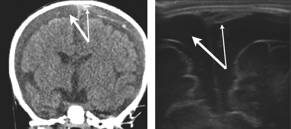Pediatrik kafa travmasında ultrason işleminde, pediatrik kafatasındaki fontaneller akustik pencere için kemik engelini ortadan kaldırarak görüntülemeye yardımcı olur. Bunun yanında ince temporal kemik üzerinden de görüntü alınabilir. Fontanelden görüntü alınacaksa 1.75- 5 MHz’lik prob yeterli olurken, temporal kemik üzerinden alınacak görüntülerde 7-10 MHz’lik lineer prob tercih edilmelidir. Ön fontanelden yüksek frekanslı lineer prob kullanılarak intrakraniyal kanama (İKK) açısından oldukça yararlı görüntüler elde edilebilinir.