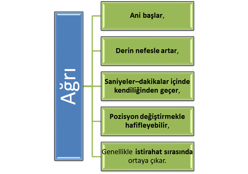 - 20–30 dakikayı aşan baskı tarzı ağrı