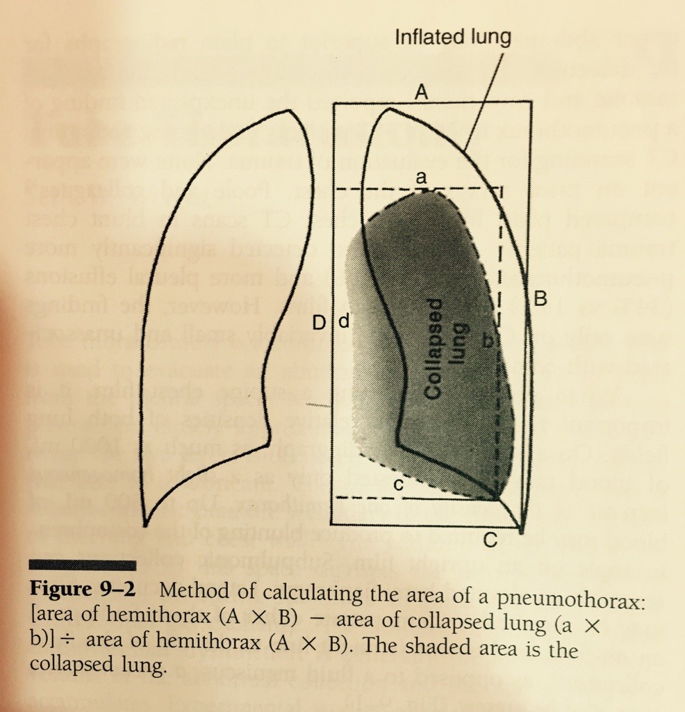 Evet var, aşağıda yaptığınız ayrıntılı ölçümleri (cm cinsinden) nomogramda yerine koyarsanız pnömotoraks yüzdesine erişebilirsiniz, fakat bu bilginin acil tıp pratiğinde hiçbir işinize yaramayacağını belirtelim.